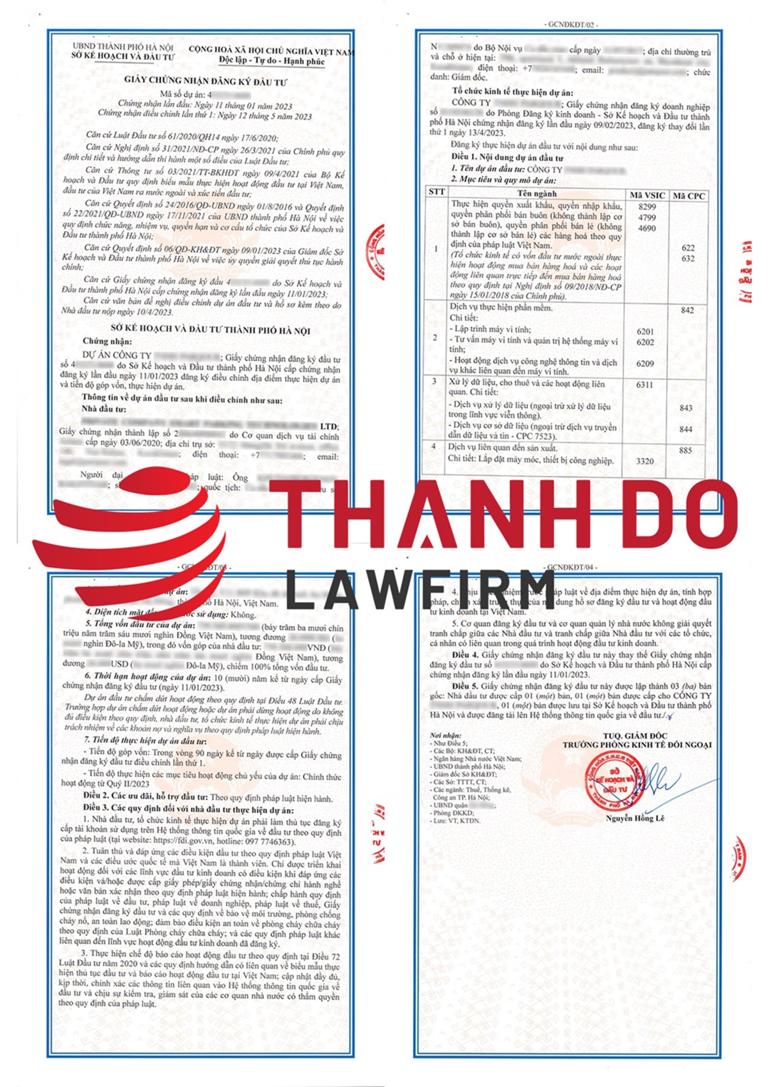Dịch vụ điều chỉnh giấy chứng nhận đầu tư Luật Thành Đô