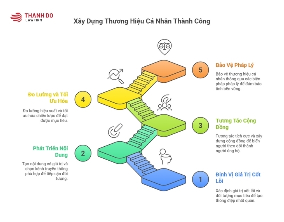 Để kiến tạo một thương hiệu cá nhân mạnh mẽ và bền vững, quá trình này cần được thực hiện một cách bài bản qua 5 bước chiến lược: định vị giá trị cốt lõi, phát triển nội dung và kênh truyền thông, tương tác và xây dựng cộng đồng, đo lường và tối ưu hóa, cùng với việc bảo vệ pháp lý vững chắc.