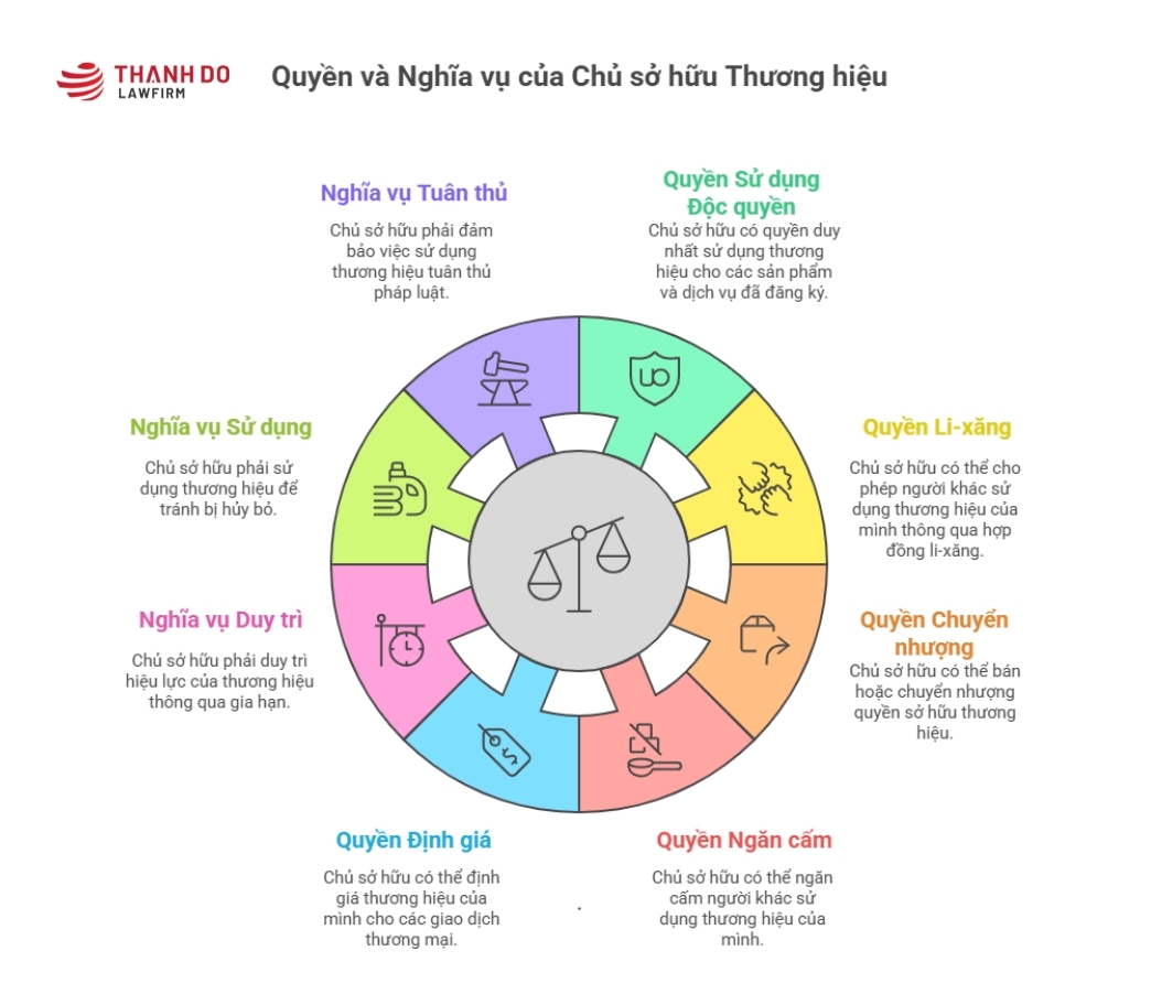 Khi một cá nhân hoặc tổ chức trở thành chủ sở hữu của một thương hiệu độc quyền, họ sẽ được hưởng một loạt các quyền lợi và phải thực hiện một số nghĩa vụ theo quy định của Luật Sở hữu trí tuệ.