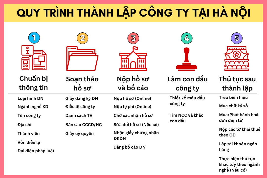 Quy trình, thủ tục thành lập công ty tại Hà Nội và Hồ Chí Minh