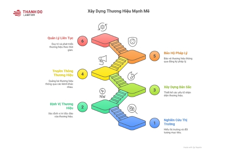 Xây dựng thương hiệu là một quá trình chiến lược liên tục, bắt đầu từ việc nghiên cứu thị trường, định vị và xác định bản sắc, phát triển các yếu tố nhận diện, đến truyền thông và bảo hộ pháp lý toàn diện.